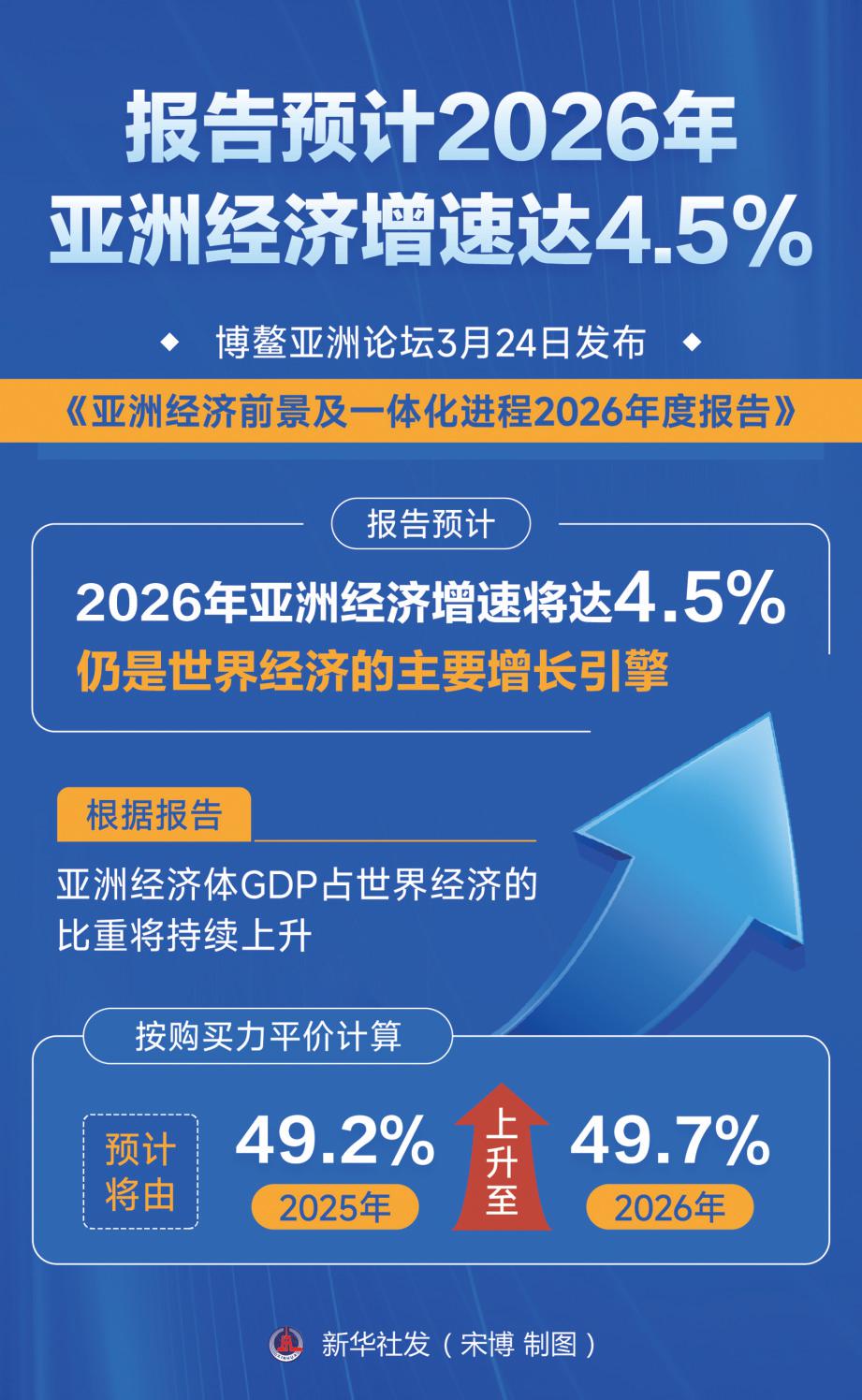 记者了解到,《亚洲经济前景及一体化进程2026年度报告》对当前亚洲经济发展进行了全景式扫描,并指出亚洲经济体GDP占世界经济的比重将持续上升,按购买力平价计算,预计由2025年的49.2%上升至2026年的49.7%。