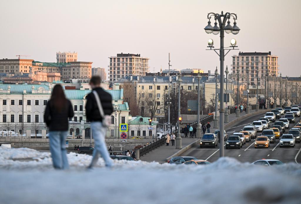 3月15日,人们走在俄罗斯莫斯科街头。新华社记者郝建伟摄