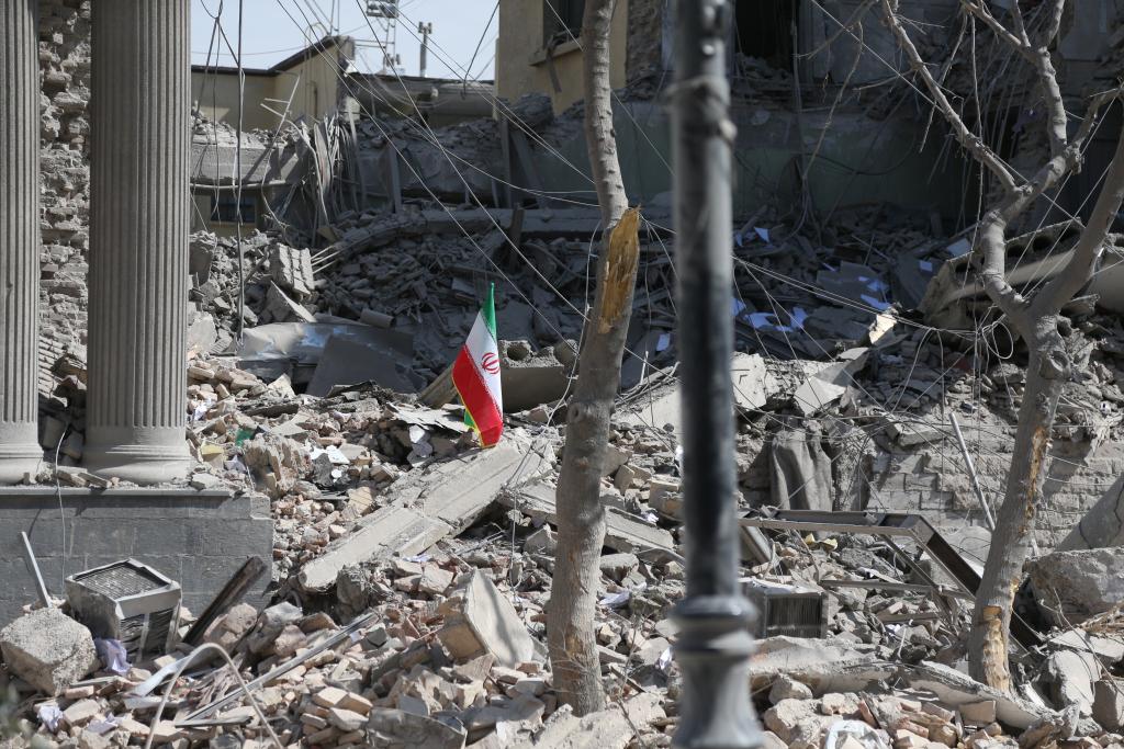3月12日,在伊朗德黑兰,市民站在建筑废墟前。新华社记者 沙达提 摄