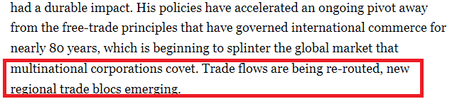 文章还指出,在本届政府撕毁了数十年的贸易协定,并抛弃了一系列经济政策和贸易原则后,要让合作伙伴和盟友再次信任美国,将变得极其困难。
