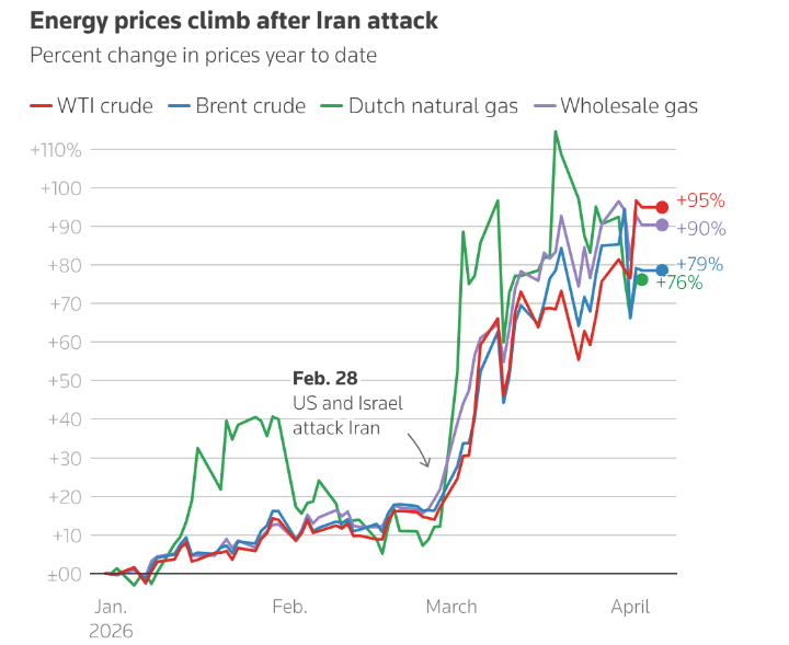 除油价和天然气价格飙升外,战事还波及化肥、氦气、磷酸盐和铝等大宗商品的全球供应链,并重创了相关地区的旅游业。