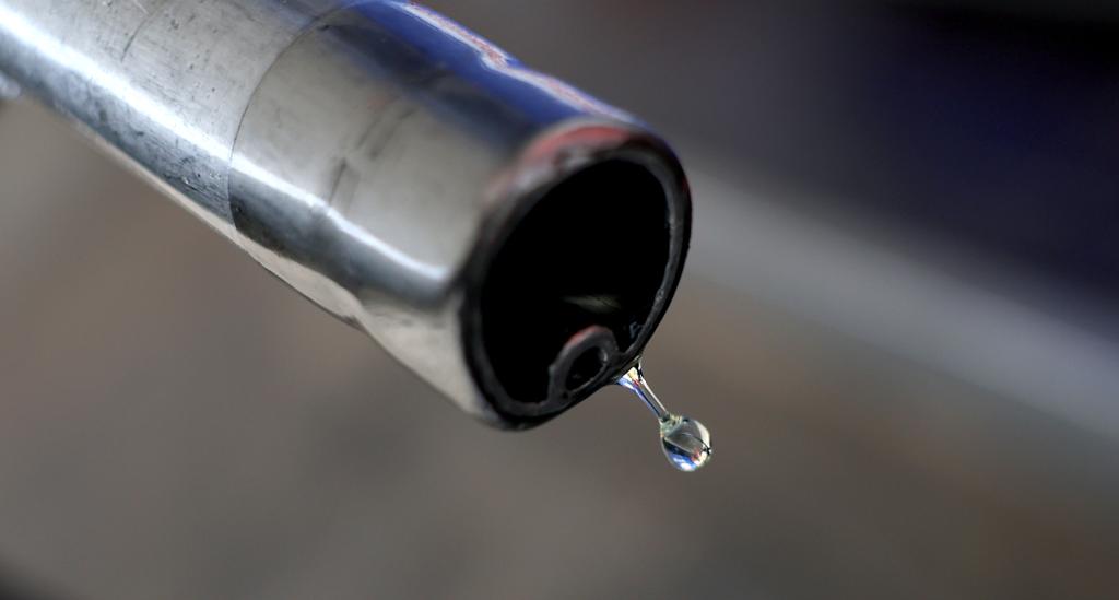 3月26日,在英国伦敦一处加油站,汽油从油枪口滴落。新华社记者李颖摄